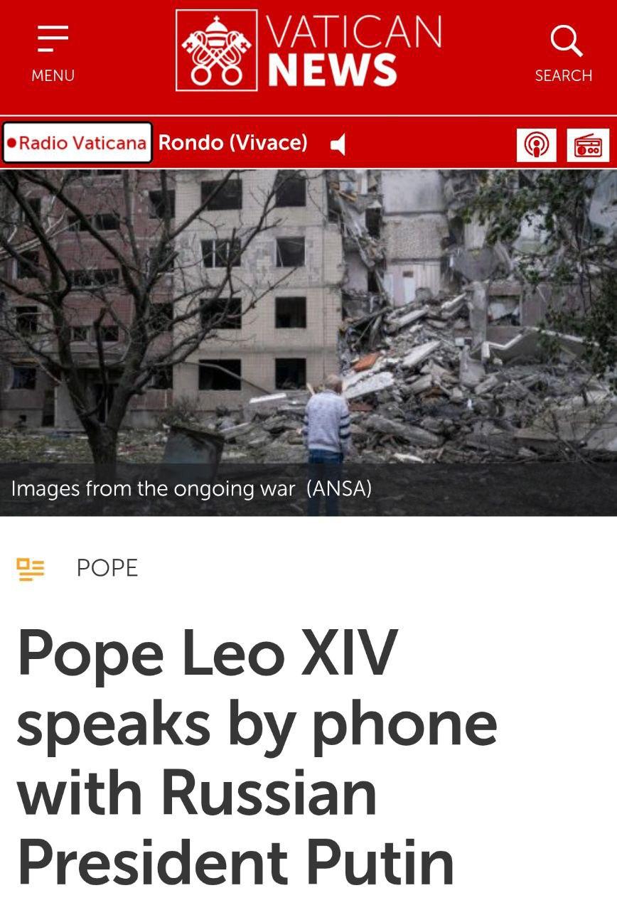 Пресслужба Ватикану повідомляє, що Лев XIV закликав російського президента "зробити крок, що сприяє миру" в Україні, і "підкреслив важливість діалогу для встановлення позитивних контактів між сторонами та пошуку шляхів вирішення конфлікту".