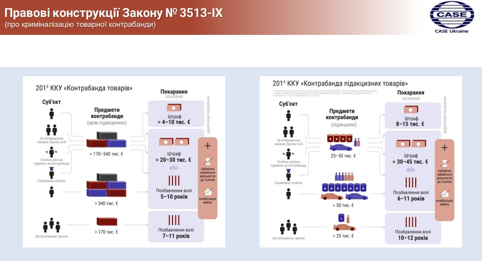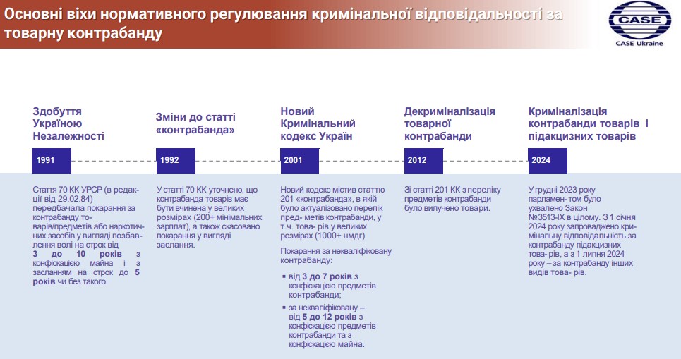 Під час великої війни Верховна Рада повернула криміналізацію товарної контрабанди. ЇЇ декриміналізували у 2012 році, залишивши відповідальність лише для специфічних предметів (зброї, культурних цінностей, деревини).