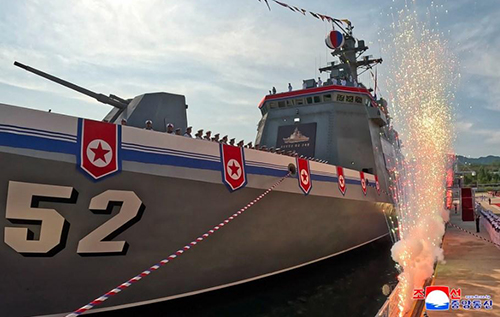 Північна Корея провела урочисту церемонію спуску на воду свого есмінця після першої невдалої спроби в травні, коли він перекинувся і частково затонув.