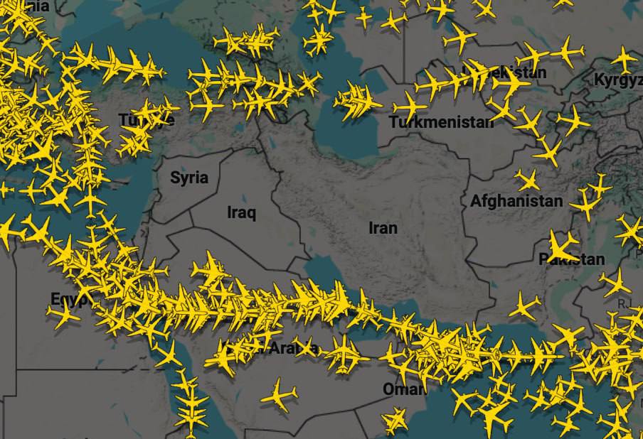 Ось так зараз виглядає повітряний простір над Близьким Сходом.