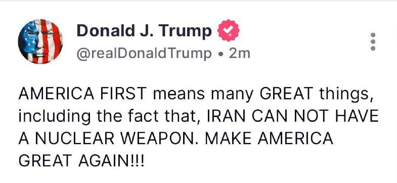 Після оголошення про від’їзд Трамп опублікував у своїй соцмережі Truth Social повідомлення, в якому наголосив, що «Зробити Америку знову великою» означає не допустити, щоб Іран отримав ядерну зброю.