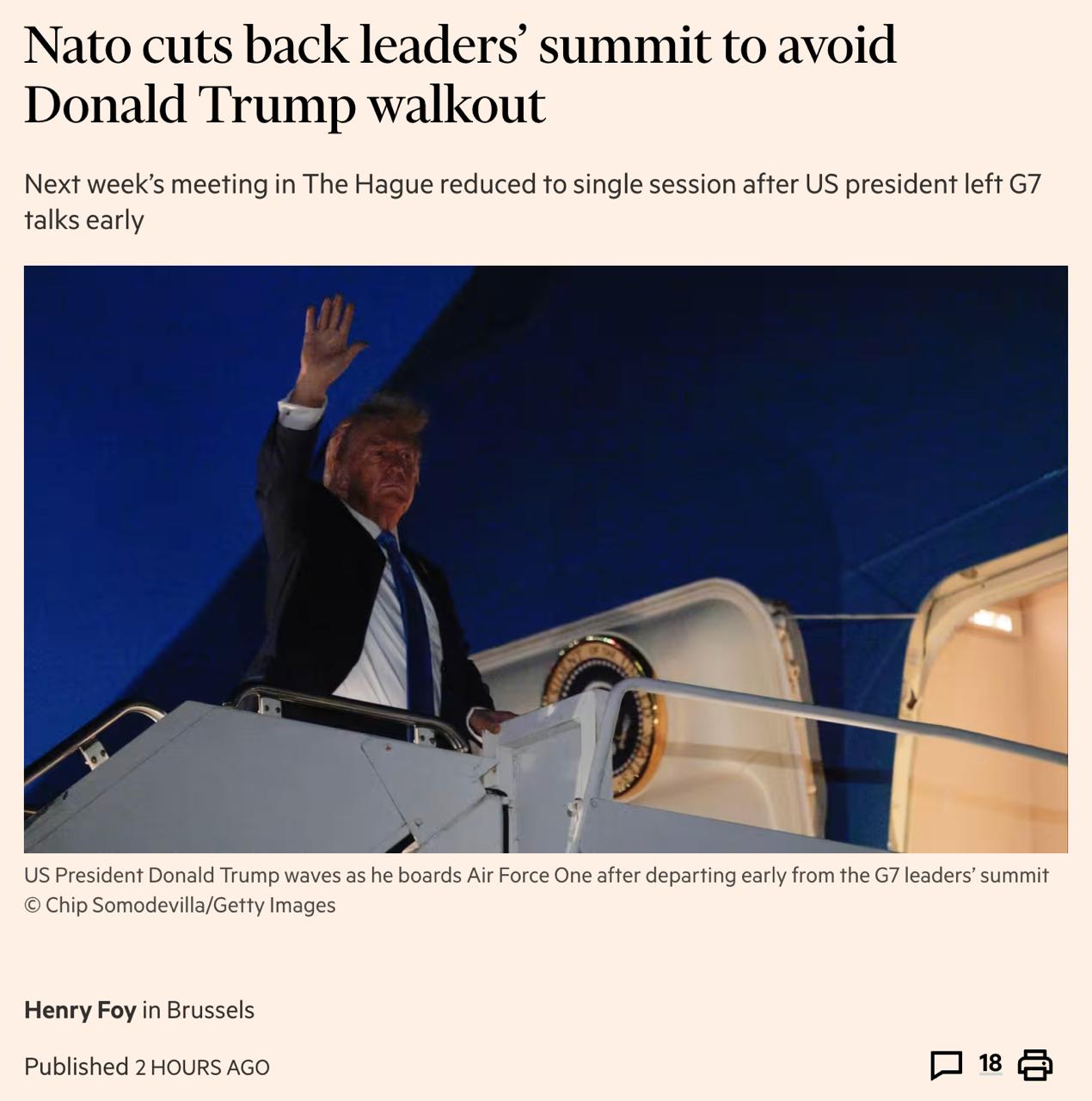 Через Трампа саміт НАТО наступного тижня скоротили до однієї робочої сесії тривалістю дві з половиною години, щоб президент США знову не поїхав достроково. Світові лідери зберуться в Гаазі в середу, а Зеленський візьме участь у вечері у вівторок ввечері.