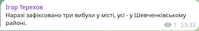 У Шевченківському районі Харкова пролунали три вибухи, повідомив міський голова Ігор Терехов.