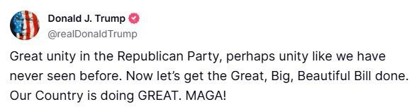 Президент США Дональд Трамп заявив про «велике об’єднання» в рядах Республіканської партії.
