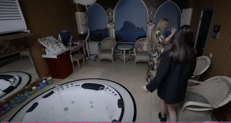 На стінах будинку артистки — мармур, дзеркала, багато золотa та низка фотографій із відомими людьми.