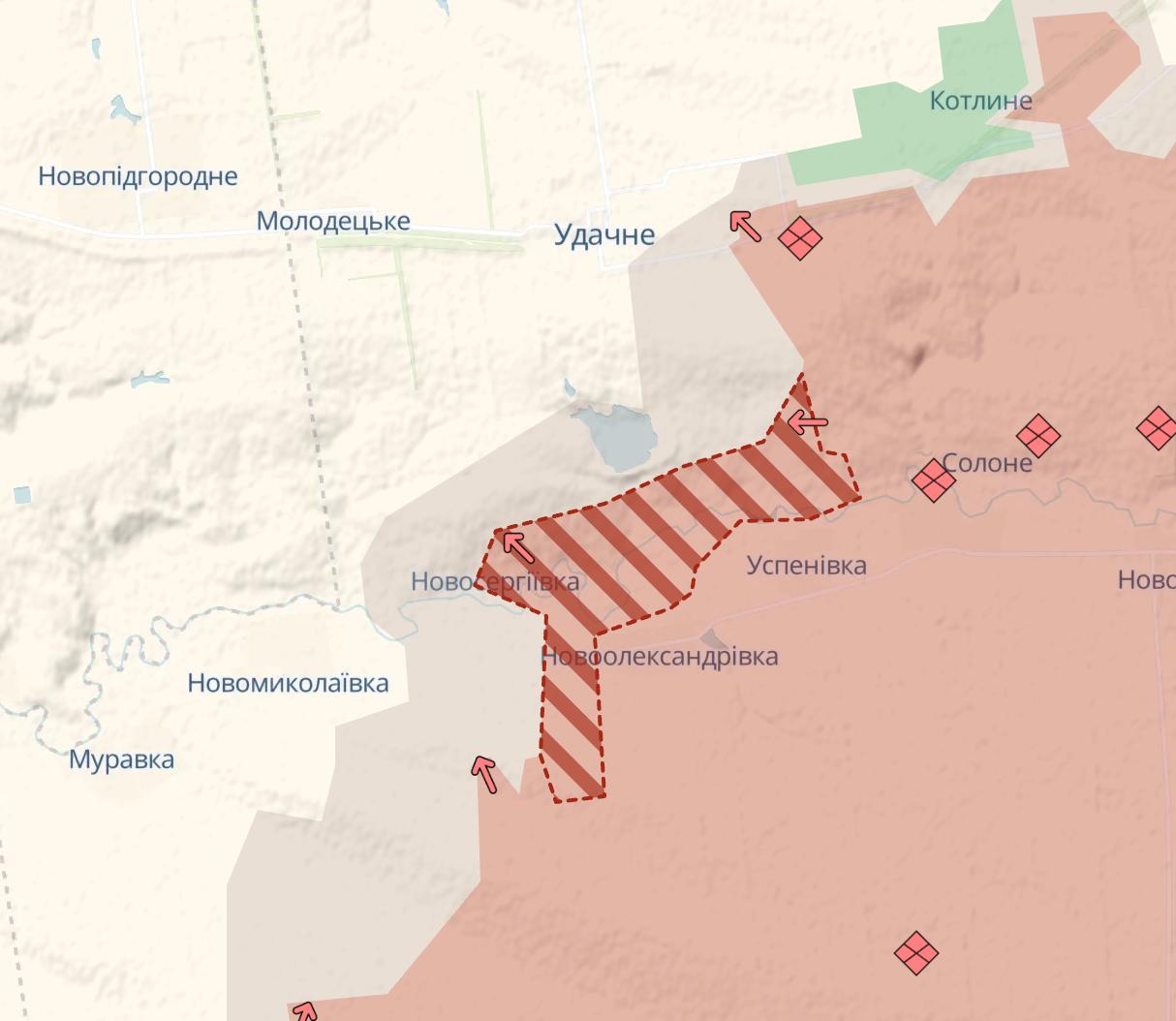Згідно з інформацією від DeepState, російська армія просунулася в Новосергіївці поблизу кордону з Дніпропетровською областю.