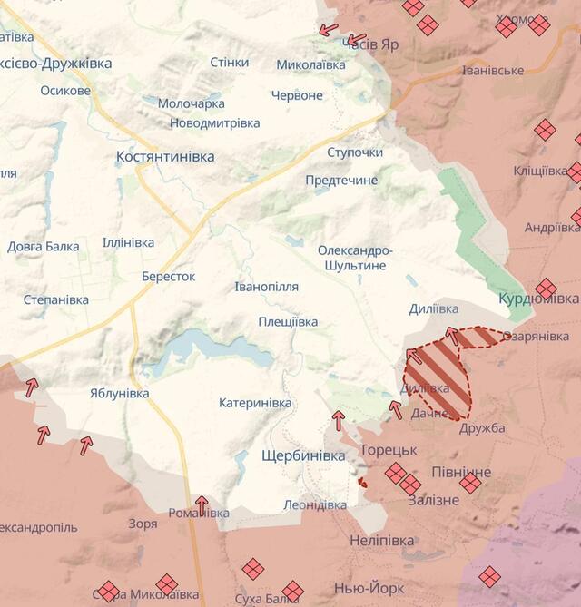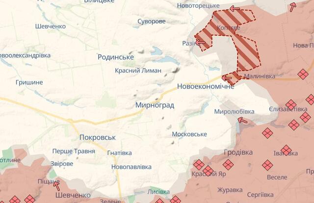 Також повідомляється про захоплення Коптєво, що дало можливість Російській Федерації наблизитися до Мирнограда зі східного боку, просуванні в Торецьку та північніше, в районі Далівки.
