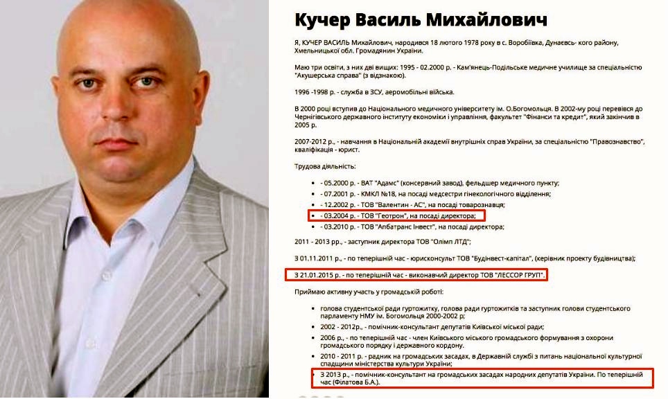 Дальнейшие поиски Кучера показали, что он не только экс-помощник экс-нардепа Бориса Филатова, но и многолетний руководитель все тех же “Геотрона” и “Лессора”.