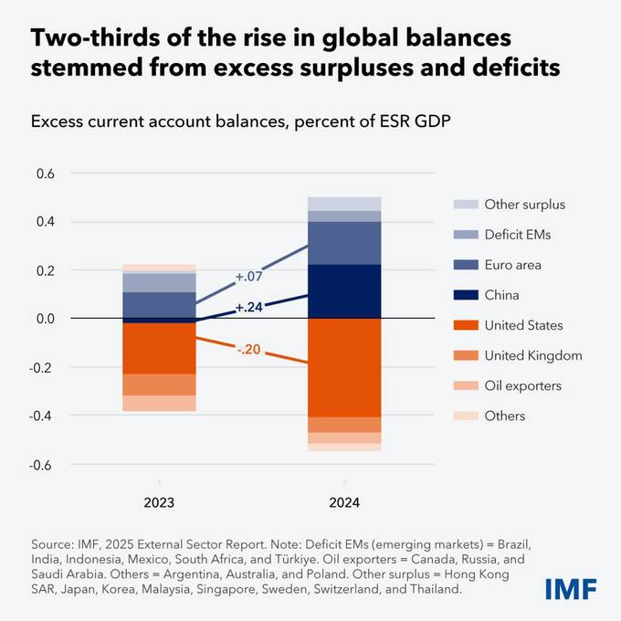 Він також вказав на зростання за підсумками 2024 року сальдо поточного балансу в різних країнах, особливо в Китаї, і його зниження в США.