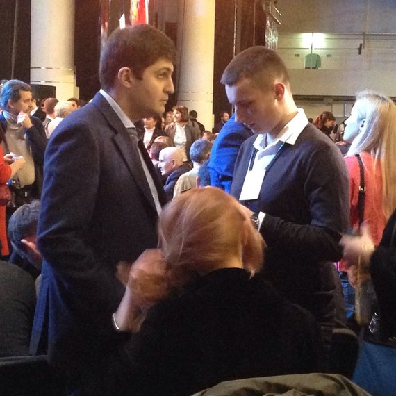 Михаил Саакашвили наконец приехал. Вместе с Мустафой Найемом, Русланой Лыжичко и Евгением Чичваркиным он поднялся на сцену. Объявили, что через две минуты начнется первая панель
