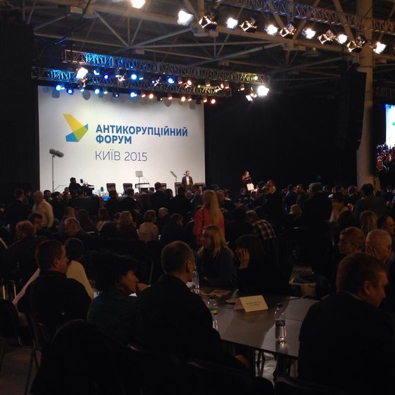 Форум начался, в общем. Светлана Залищук выступает первой. Говорит: необходимо запустить системные изменения в Украине, чтобы коррупция стала невозможной