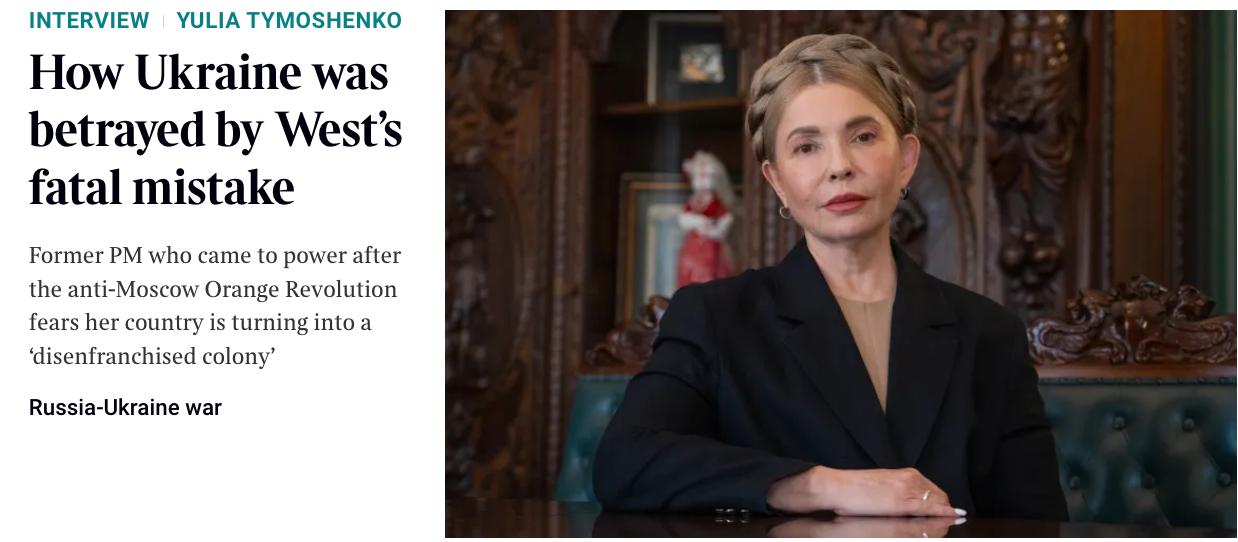 «З моменту повномасштабного вторгнення Росії західні країни — під погрозою призупинення кредитування — нав’язали неприйнятний контроль над українськими державними інститутами, банками та монополіями, підриваючи суверенітет країни. Це жорстоко і несправедливо стосовно до нації, яка перебуває у стані війни», — заявила Тимошенко.