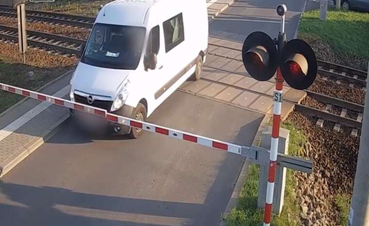 Коли шлагбауми опустилися, він опинився на перетині з залізницею. Замість того щоб зламати шлагбауми та покинути небезпечне місце, він спробував сховатися на газоні від потяга, що наближався. Однак йому не вдалося це зробити. Потяг “Świnoujście – Kraków” зіткнувся з мікроавтобусом, вдарившись у задню частину автомобіля. На щастя, водій мікроавтобуса залишився неушкодженим. Пасажири потяга також не висловлювали скарг.
