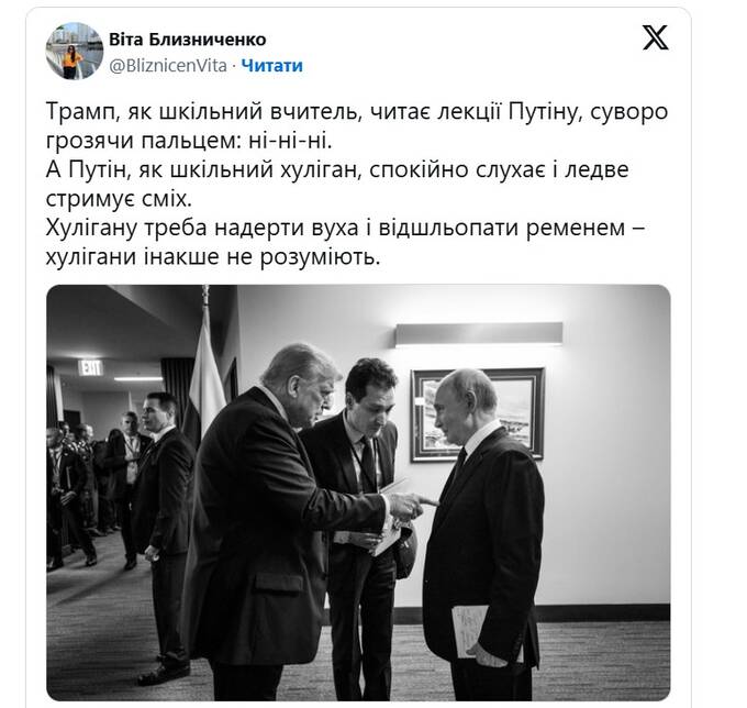 Трампа і Путіна порівняли з вчителем та учнем-хуліганом / Допис @BliznicenVita у соцмережі Х