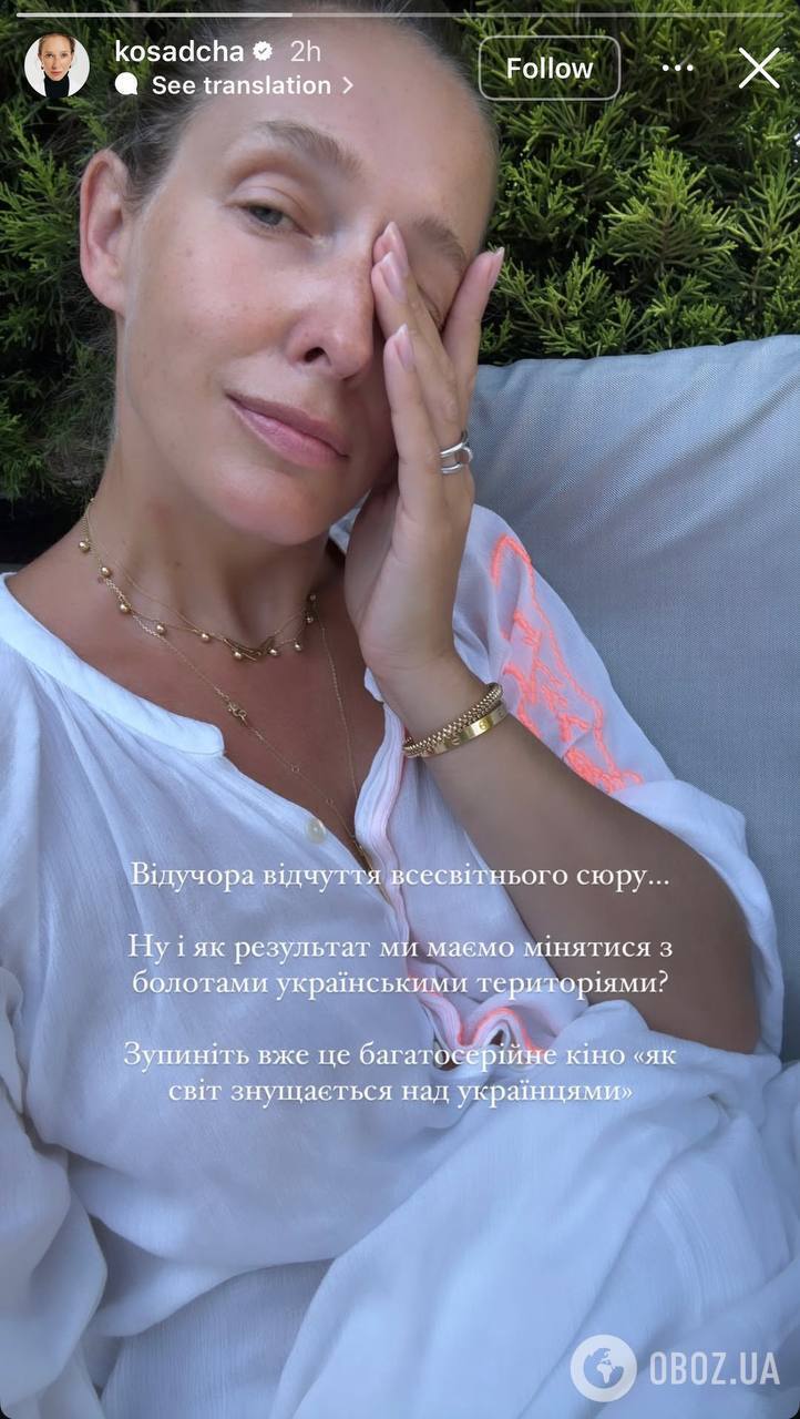"Ну і як результат ми маємо змінюватися з болотами українськими територіями? Зупиніть вже це багатосерійне кіно "Як світ знущається з українців", – написала знаменитість.