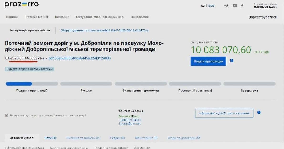 Попри нестабільні та небезпечні обставини, 14 серпня комунальне підприємство «Добропільський міський транспорт» оголосило тендер на поточний ремонт дороги по провулку Молодіжному. Закупівля передбачає виконання одного комплексу робіт — ремонт 7 500 м² дорожнього покриття — з очікуваною вартістю 10 083 070,60 грн.