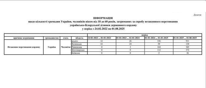 У 2025 році кількість чоловіків, які намагалися перетнути кордон із Білоруссю, значно зросла.