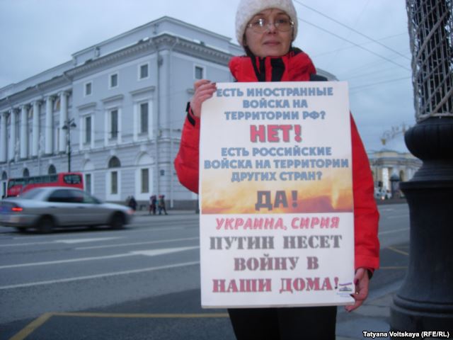 Російські активісти роздавали перехожим листівки з інформацією про протести далекобійників, а також про війну у Сирії, метою якої, на думку авторів листівок, «є не протидія угрупованню «Ісламська держава», а протидія силам свободи і демократії».