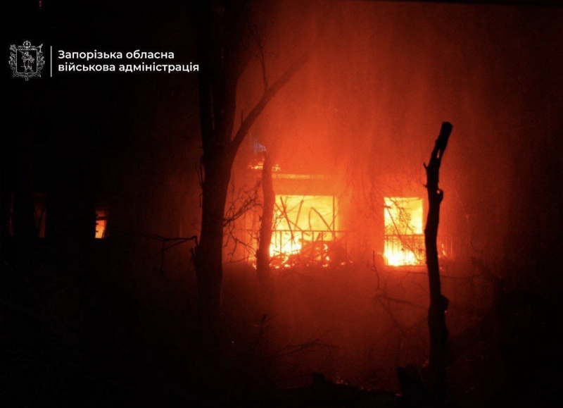 "Пошкоджені приватні будинки, зайнялася пожежа - такі наслідки ворожого удару по Запоріжжю. Росіяни ударили щонайменше трьома БпЛА по місту", - написав Федоров о 03:29.