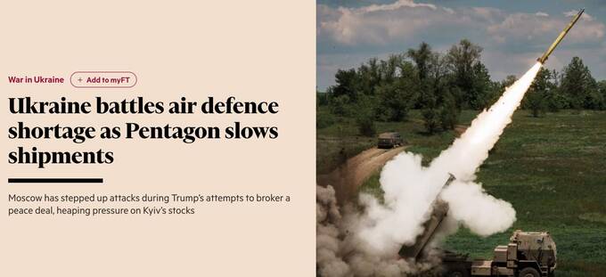 Останніми місяцями постачання зі США були нерегулярними та меншими за очікуване через вказівки Пентагону щодо економії. Ракети, закуплені у виробників через «Ініціативу сприяння безпеці України» (USAI), випускаються партіями, що веде до перерв у постачаннях. Поставка ППО з Європи на заміщення американськими озброєннями "тільки почалася частково".