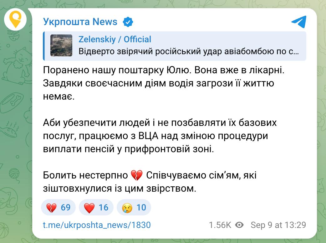 «Укрпошта» заявляє, що після удару по Яровій процес видачі пенсій у прифронтових зонах буде змінено - «щоб забезпечити безпеку людей і не позбавити їх основних послуг».