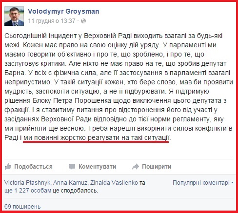 У день інциденту десятки/сотні українських ЗМІ повідомили про виключення Барни з фракції БПП.