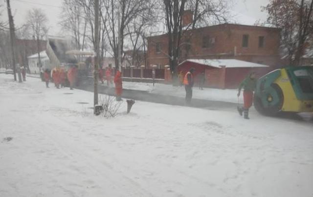 В Полтаве на улице Сковороды кладут асфальт поверх выпавшего снега, что противоречит государственным строительным нормам. Об этом пишет местный сайт "Виче".