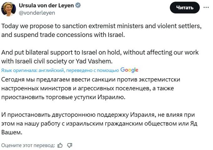 По ее словам, из-за конфликта в секторе Газа поддержка от Еврокомиссии на 2025-27 годы будет приостановлена.