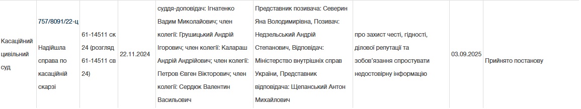 Верховний Суд направив на новий розгляд до суду апеляційної інстанції справу за позовом 52-річного уродженця Самбірського району Андрія Недзельського, відомого в статусі так званого "злодія в законі" на прізвисько "Нєдєля"/"Львівський", який домагається визнання неправдивою та такою, що порушує його особисті немайнові права інформацію, оприлюднену восени 2021 року тодішнім очільником МВС Денисом Монастирським.