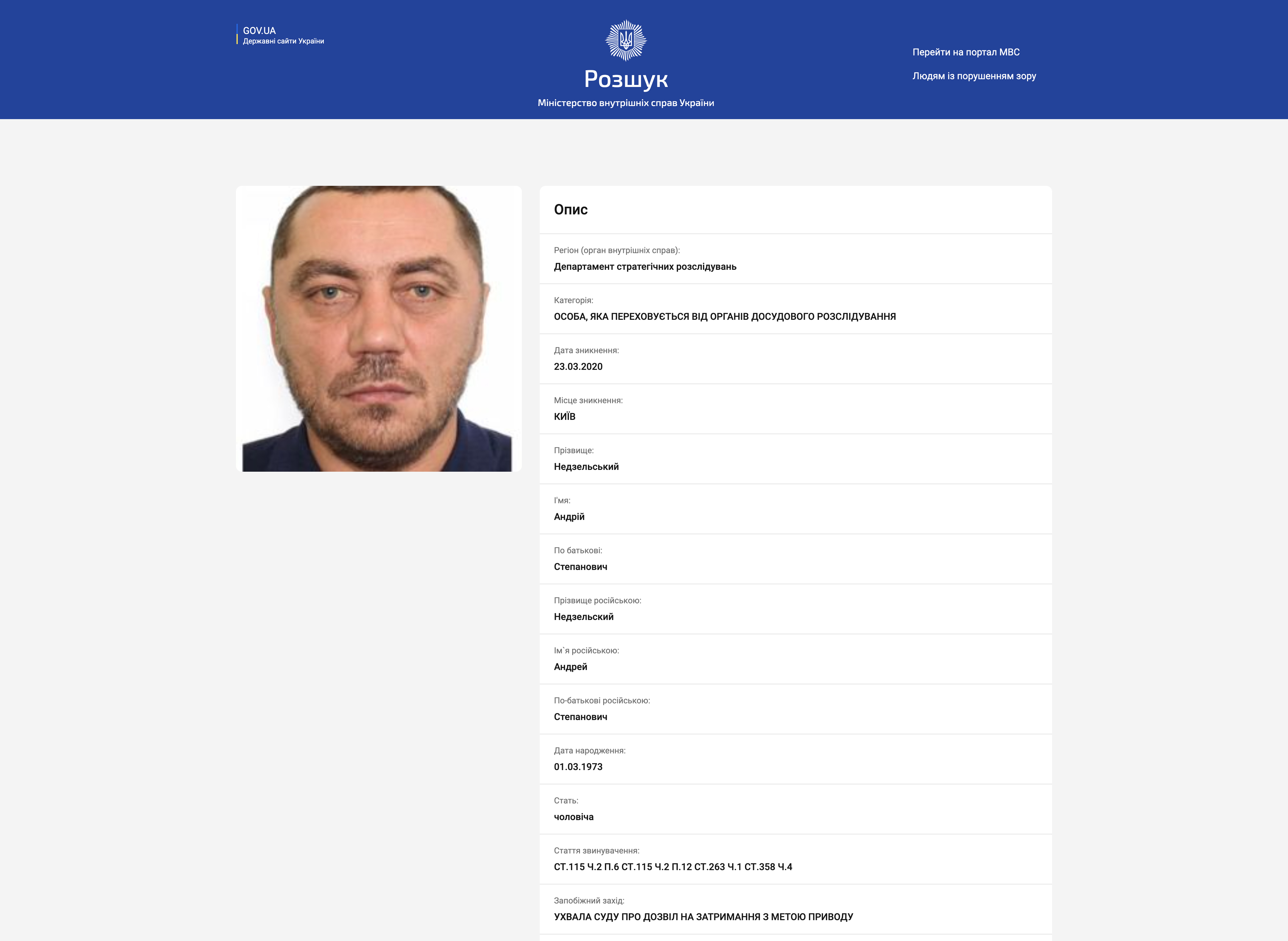 Нагадаємо, що від весни 2020 року Андрій Недзельський оголошений в розшук за підозрою в скоєнні восени 2009 року в центрі Києва зухвалого вбивства кримінального авторитета Олександра Семенова на прізвисько "Кацап" (п.п. 6, 12 ч.2 ст.115 КК України). Додатково "злодію в законі" також інкримінується незаконний обіг зброї (ч.1 ст.263 КК України) і використання підробних документів (ч.4 ст.358 КК України).