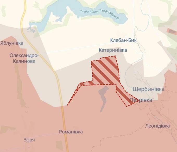 Крім того, РФ просунулася південніше від Костянтинівки, в напрямку водосховища Клебан-Бик з боку Катеринівки.