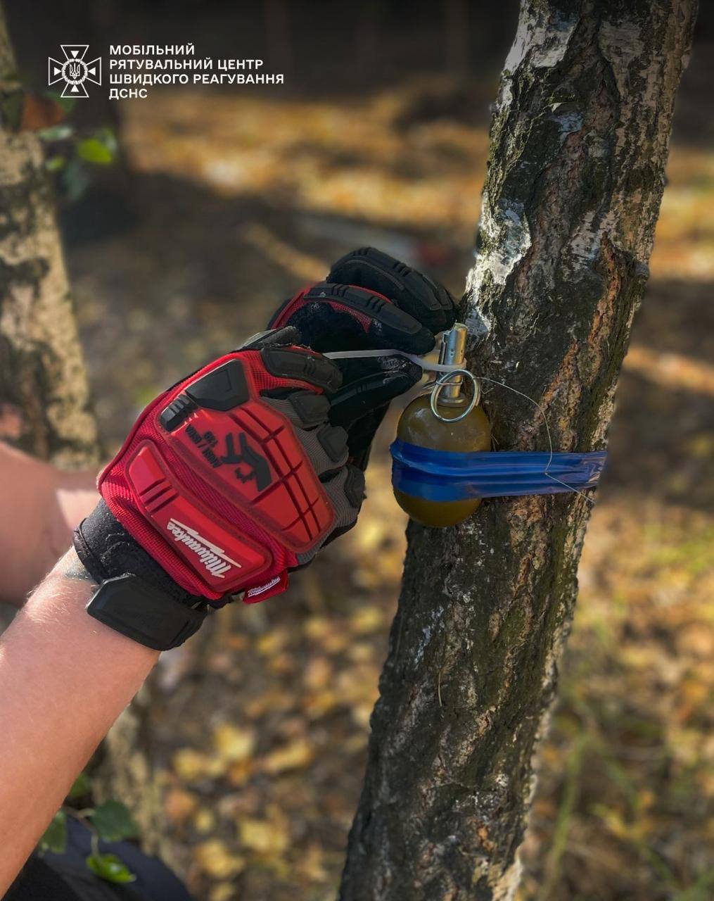 На Київщині виявили та знешкодили розтяжку з гранатою, закріплену на дереві