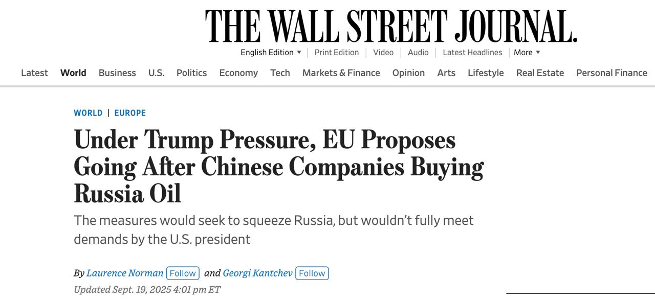 "Ця пропозиція лише частково наближає нас до жорсткіших заходів, які Трамп вимагає як умову для запровадження нових санкцій США проти Кремля. Він повідомив європейським чиновникам, що хоче встановити мита до 100% для Китаю за його підтримку Росії, але ЄС давно відмовляється вдаватися до мит як до інструменту тиску, як це робить Трамп", - пише WSJ.