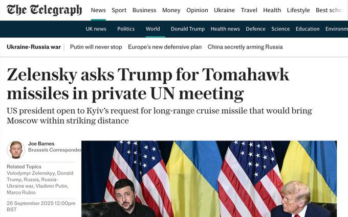 Зеленський знову попросив Трампа надати «Томагавки» для тиску на Путіна - The Telegraph