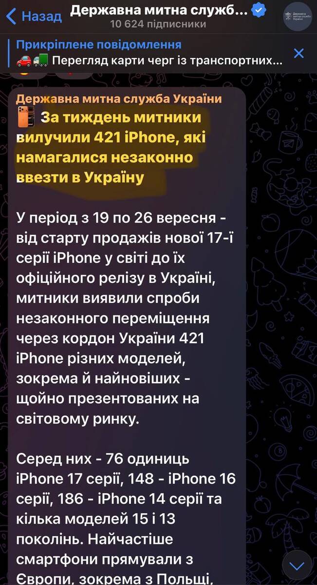 За тиждень Держмитслужба «спіймала» 420 iPhone, тоді як контрабандою заїжджає понад 16 тисяч
