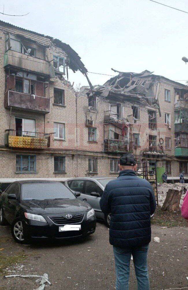 Унаслідок вибуху частково зруйнувався дах багатоквартирного будинку. Люди були евакуйовані з цієї будівлі.
