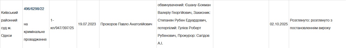 Відповідний вирок 2 жовтня 2025 року постановив служитель Феміди Павло Прохоров, повідомляє Детектив-Інфо.