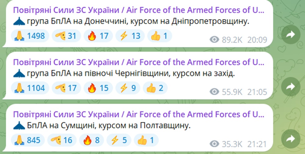 За інформацією Повітряних сил, ворожі безпілотники помітили: