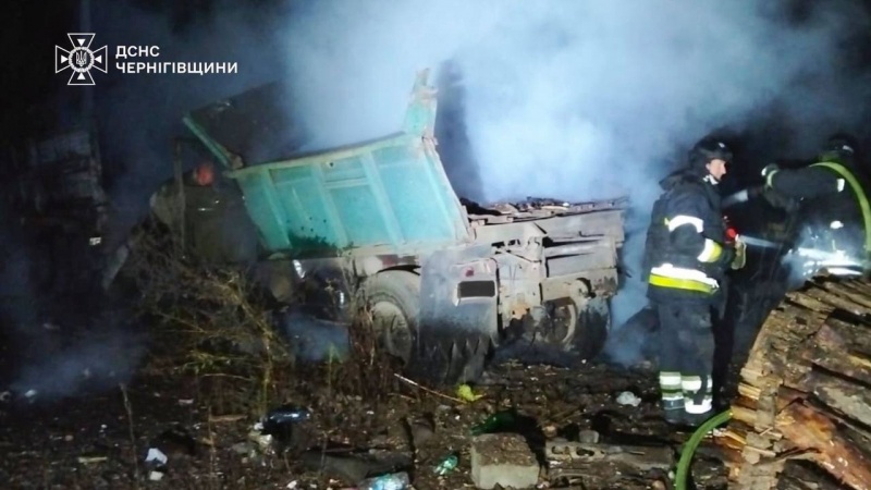 У Чернігові удар було зафіксовано на території одного з місцевих підприємств — внаслідок атаки спалахнула вантажівка. Пожежу швидко загасили рятувальники.