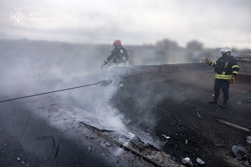 "26 жовтня, о другій половині дня ударний безпілотник атакував житловий сектор міста Суми. Внаслідок влучання у покрівлю дев’ятиповерхового житлового будинку виникла пожежа, яку рятувальники оперативно ліквідували", - розповіли надзвичайники.