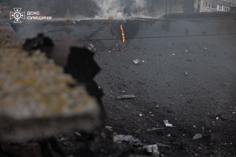 Водночас начальник Сумської міської військової адміністрації Сергій Кривошеєнко уточнив, що удар був близько 14:20. Він прийшовся безпосередньо по даху будинку.