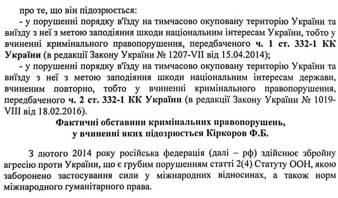 СБУ висунула обвинувачення Філіппу Кіркорову за підтримку війни в Україні та анексії Криму, а також за регулярні виступи на окупованих територіях перед російськими військовослужбовцями.