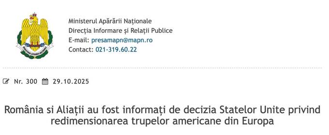 Цю інформацію підтверджує і заява Міністерства оборони Румунії: «Рішення США пов’язане із завершенням ротації в Європі бригади, яка мала підрозділи в низці країн НАТО».