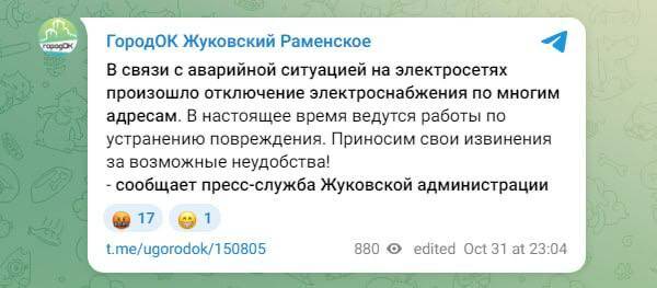 Московська область РФ залишилася без світла через масштабне відключення електрики