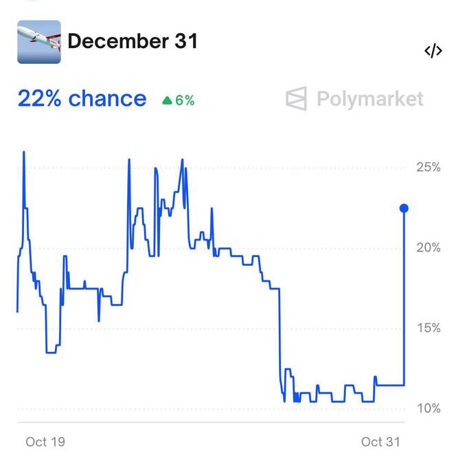 Згідно з даними платформи, яка дозволяє користувачам робити ставки на результат різних подій, ймовірність цього сценарію різко зросла.