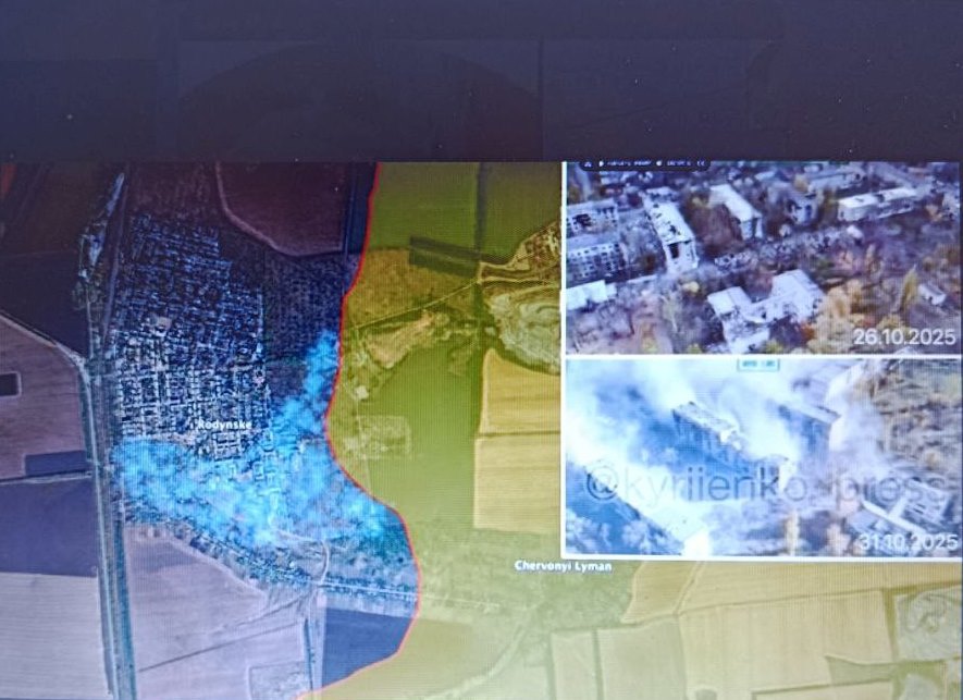 Також Репке повідомляє, що Сили оборони України зачистили Родинське, і демонструє звідти кадри: росіяни бомблять позиції, які ще 26 жовтня були під їхнім контролем.