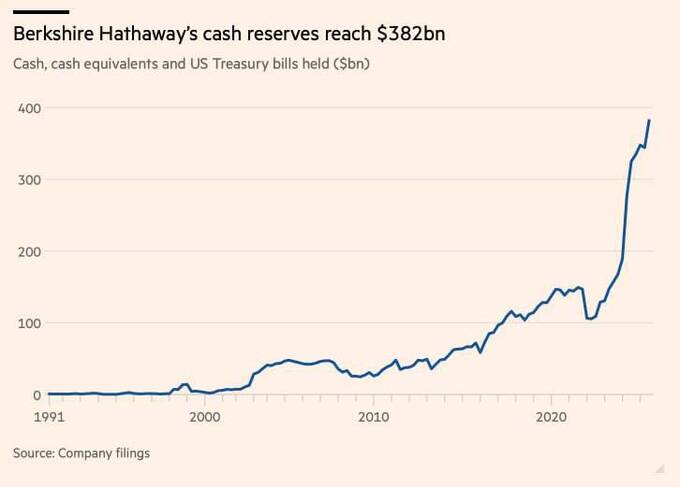 Воррен Баффет накопичив рекордні $382 млрд готівкою — більше, ніж будь-яка компанія в США.