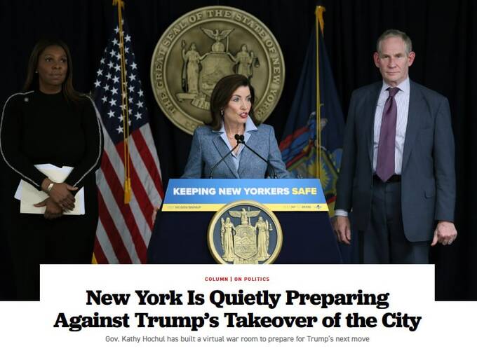 Приводом стали побоювання, що Трамп може використати федеральні сили — Національну гвардію або ФБР — після обрання мером демократа-соціаліста Зохрана Мамдані. За даними джерел видання, адміністрація штату розглядає можливі сценарії, щоб «зупинити або пом’якшити будь-яке федеральне вторгнення».