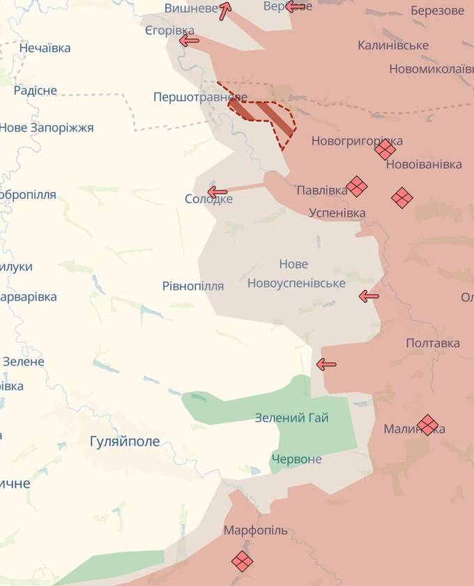 Також російські війська просунулися на кордоні Дніпропетровської та Запорізької областей, сіра зона значно розширилася в напрямку Рівнопілля.