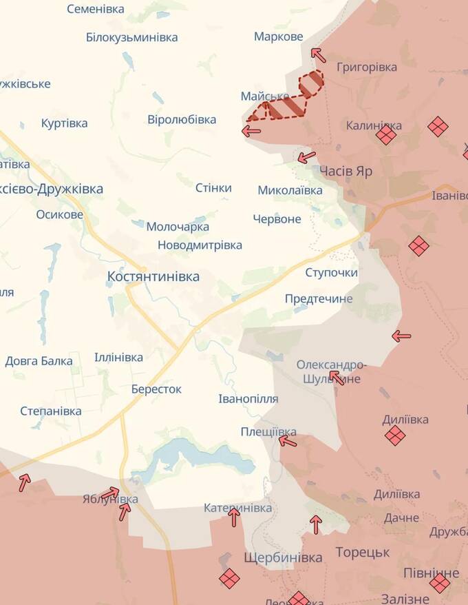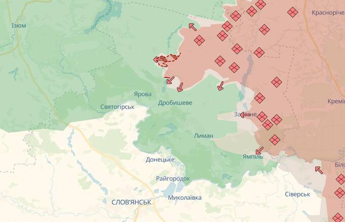 Крім цього, у Росії є успіхи північніше Костянтинівки в районі Майського та північніше Лимана.